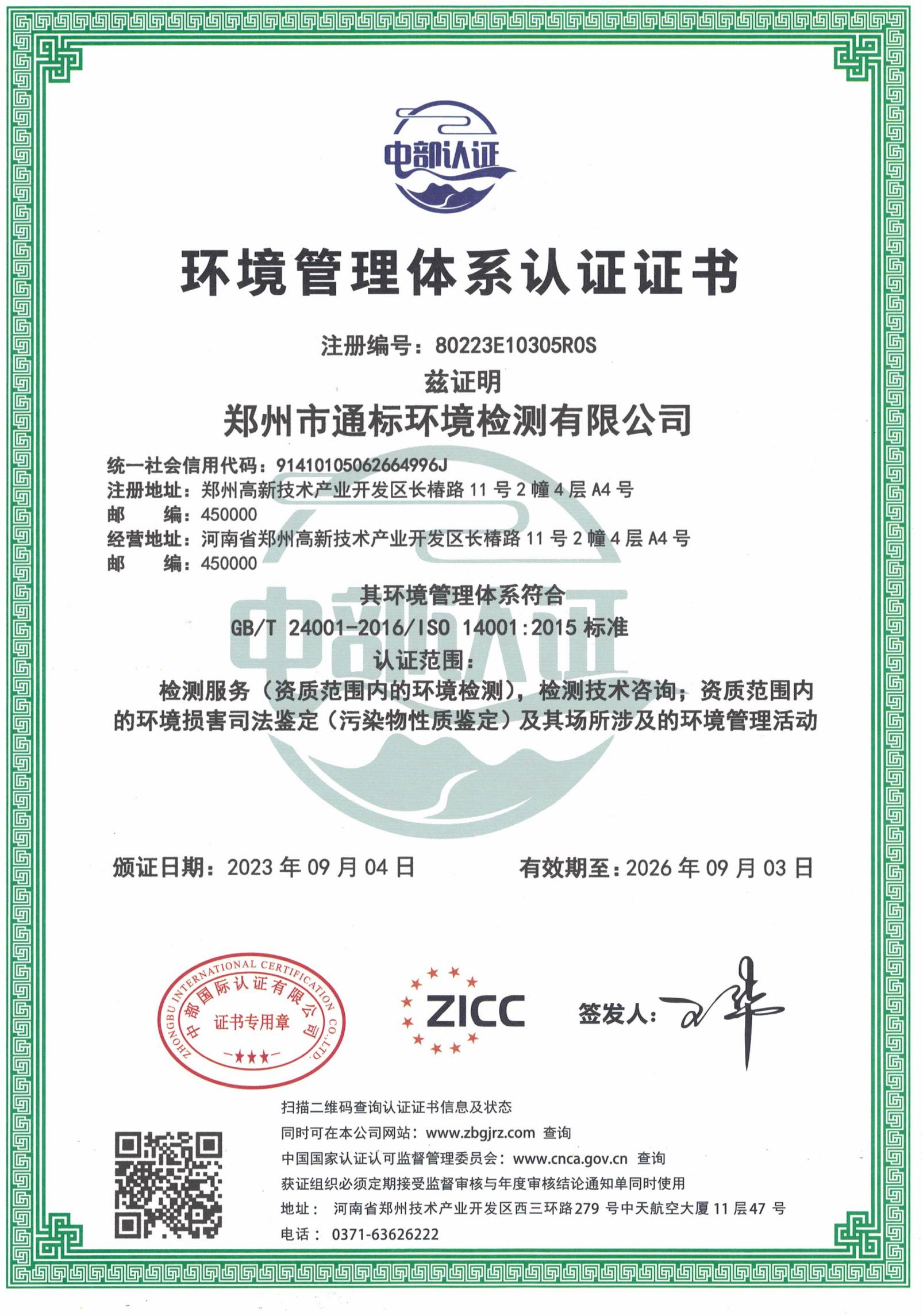 鄭州市通標環(huán)境檢測有限公司